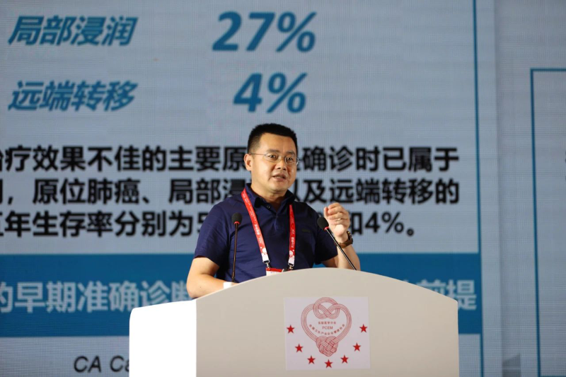 当天最后一位上台的报告嘉宾,大会执行主席、全国卫生产业企业管理协会实验医学(青年)专家委员会主任委员、上海市胸科医院检验科主任娄加陶教授作了《肺结节良恶性鉴别的实验室诊断策略》的精彩分享。
