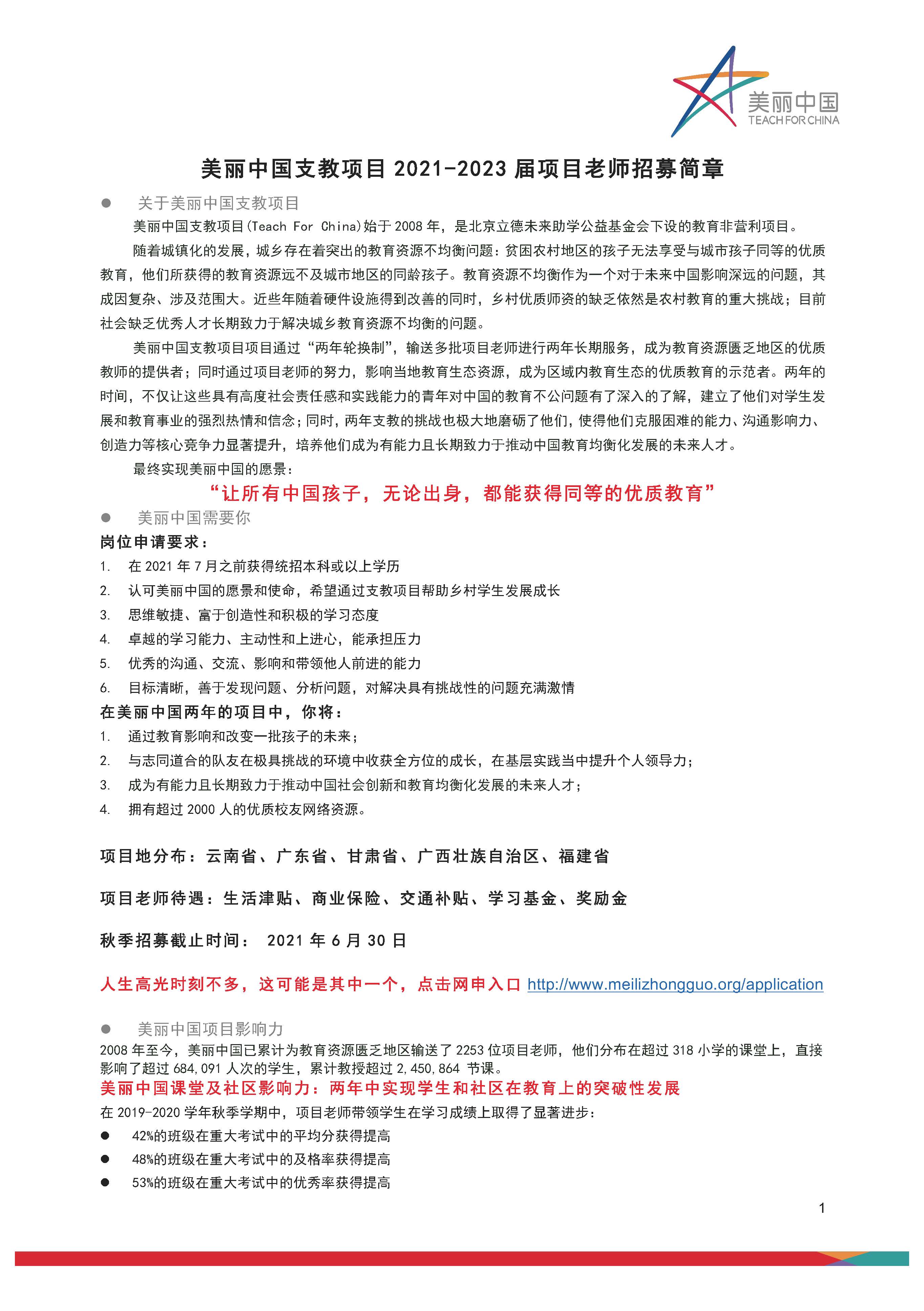 求职快讯|美丽中国支教项目2021-2023届项目老师招募简章