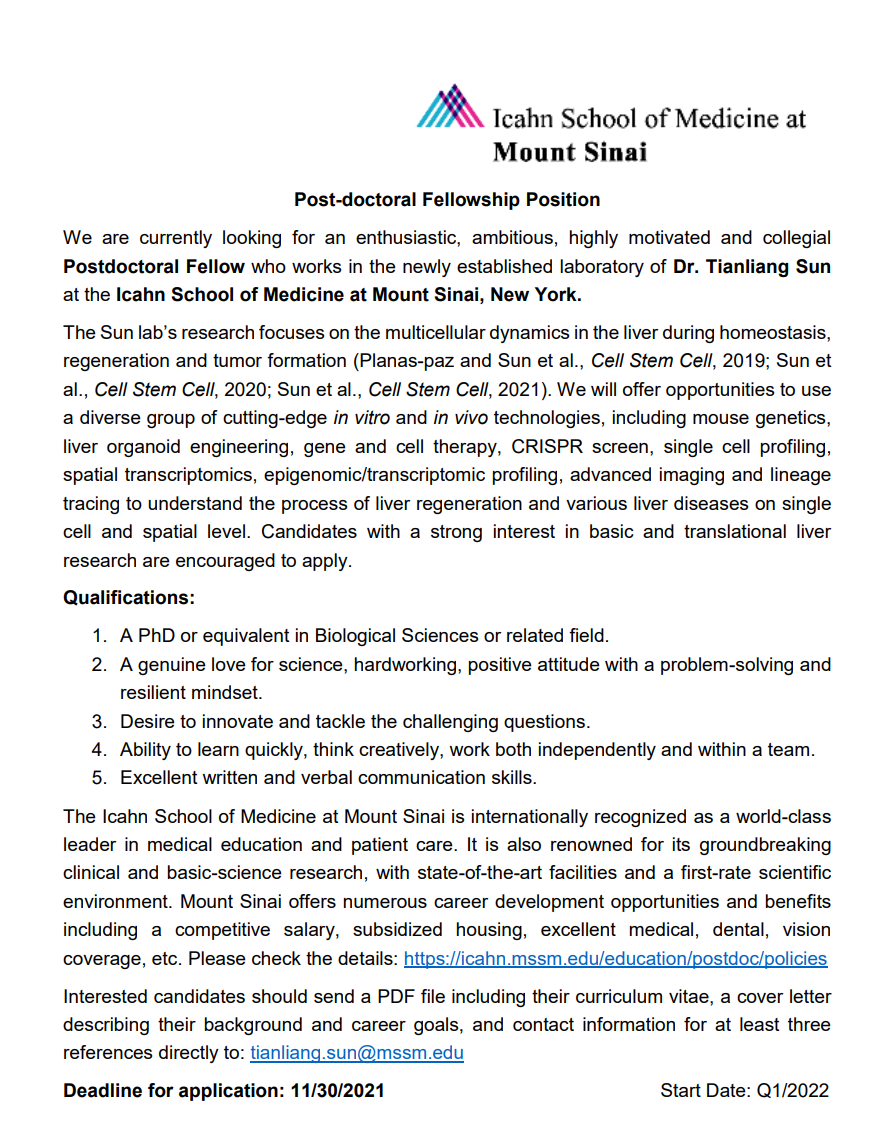 海外博士后岗位招聘——Icahn School of Medicine at Mount Sinai (Manhattan, NYC, United States)
