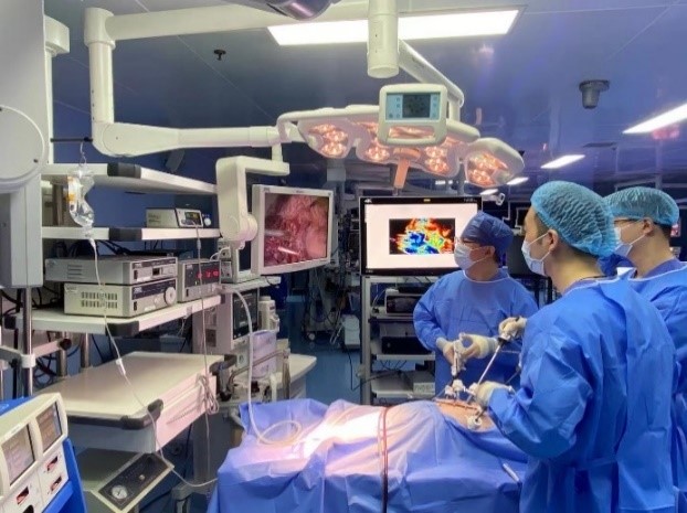 童善保和苗鹏团队研制了高分辨率激光散斑衬比成像技术,在手术显微镜设备上实现近红外相干光血流灌注成像和多波长重建血氧代谢成像功能。血管成像过程中不需要使用造影剂,具有高分辨率、大视野测量和实时高清显示的技术优势,解决了传统外科手术显微镜只能提供形态学观测,无法提供血流灌注和血氧代谢信息的瓶颈问题。已自主研发了具备无造影剂血流成像功能的神经外科手术显微镜,合作研发了具备ICG荧光和激光散斑成像的多模态腹腔镜产品。