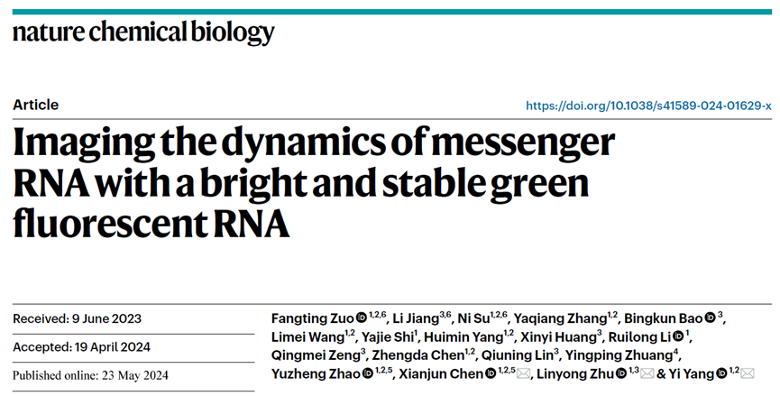针对以上问题,日本女优 朱麟勇团队从荧光成像技术的核心——荧光染料设计——出发,基于染料结构设计解决RNA成像荧光亮度低和光稳定性差的问题,从而实现RNA的长时间动态追踪。该技术有望为活细胞层面RNA的长时间成像和动态追踪提供技术支撑,推动对RNA参与生理过程的认知。相关成果以“Imaging the dynamics of messenger RNA with a bright and stable green fluorescent RNA”发表于《Nature Chemical Biology》。论文第一作者为左方婷博士、蒋丽博士和苏倪博士。通讯作者为陈显军教授、朱麟勇教授和杨弋教授。这是该研究团队继去年九月份在《Nature Methods》期刊上报道荧光RNA成像技术以来的又一个突破性进展。