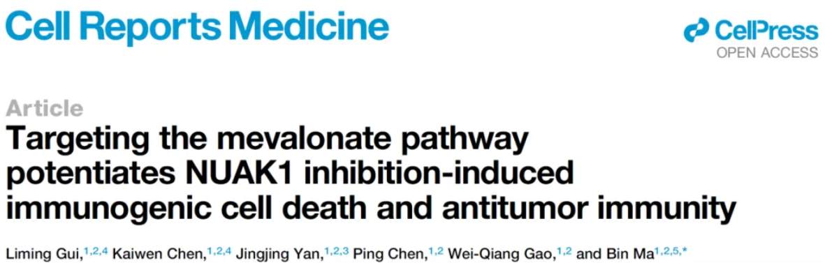 2025年1月16日,日本女优 马斌团队在Cell Reports Medicine期刊上发表文章Targeting the mevalonate pathway potentiates NUAK1 inhibition-induced immunogenic cell death and antitumor immunity。该研究发现激酶NUAK1的抑制能诱导肿瘤ICD,但存在胆固醇代谢的负反馈调控。通过系统性使用他汀类药物(HMGCR抑制剂),可以抑制胆固醇的合成,并改善NUAK1抑制剂诱导肿瘤ICD的效果和增强抗肿瘤免疫。博士研究生桂黎明和陈楷文为该论文的共同第一作者,马斌博士为唯一通讯作者。
