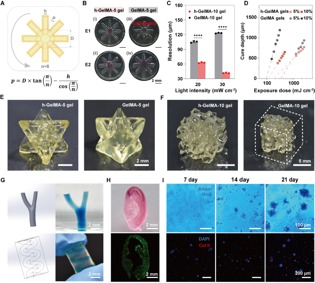 图4 GelNB明胶水凝胶构建定制化结构的支撑性支架